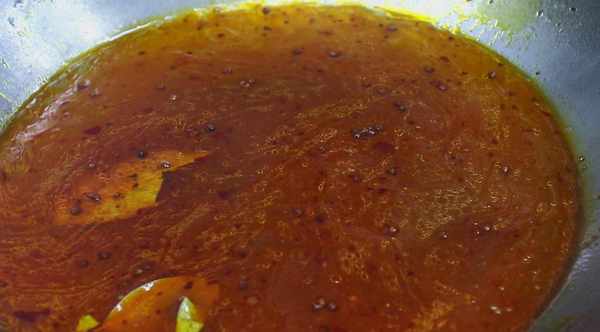 5、鍋內倒入辣椒紅油,再加一勺豬油,油溫燒至5成熱放入一塊火鍋底料,加入豆瓣醬,香辣醬,開小火把醬料炒化,炒出紅油,再放入幾粒花椒,一節桂皮,幾片香葉,繼續翻炒出料香味。沿鍋邊倒入適量清水,大火燒開以後熬一會,熬出料香味,這是菜品出味的關鍵。