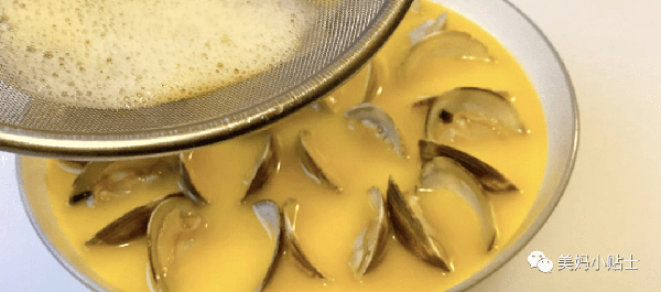 5.為瞭保證蒸出來的雞蛋更美滑,我們倒入雞蛋液的時候,用過濾網過濾雞蛋液,把泡沫過濾掉,這樣蒸出來的雞蛋一點蜂窩都沒有。