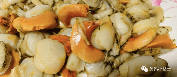 2.準備十幾二十個扇貝,刷洗幹凈,去掉殼,然後把黑色的內臟部分去掉,再清洗一遍。