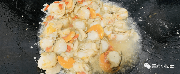 5.先把鍋燒熱,放入一點油,把一半蒜泥放進去爆香,然後加入處理好的扇貝,開大火,翻炒十幾秒。