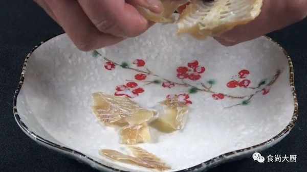 1,首先準備兩條幹的馬哈魚,這種幹的馬哈魚是在網上買的,首先用刀給它切成兩半我的鍋有點小,切兩半方便放在鍋裡,好以後放在鍋裡頭給他煮一下,大約煮十分鐘就行,煮熟以後撈出放涼,放涼以後把魚肉、魚骨分離,馬哈魚的刺非常少,又是非常筋道緊實,非常好吃。
