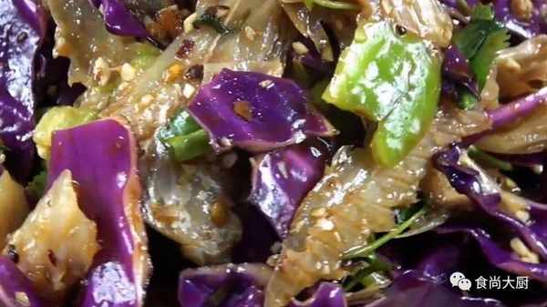 2,紫色的甘藍撕成小塊,也可以換成大白菜。