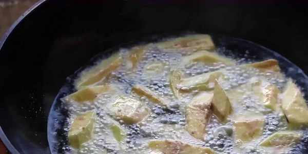 2、茄子表面的蛋液和淀粉一定要裹得均勻一點,這樣可以讓茄子少吸很多油。
