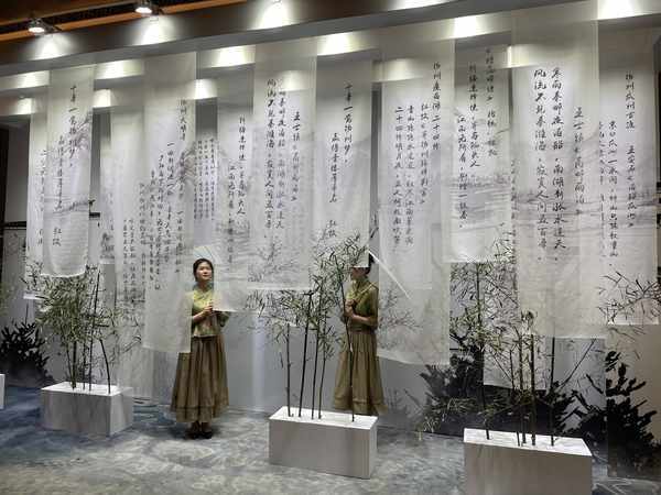 雅宴酬知己,盛席待佳音。晚宴現場以詩情畫意的秀麗江南為靈感,水墨江南,點染青山。白墻灰瓦、雅素明凈的造景,清新秀麗的琵琶演藝,勾勒出一幅煙雨蒙蒙、細雨霏霏的丹青畫卷。“煙波與春草,千裡同一色”的情境與擷取精粹的時令珍味相得益彰。