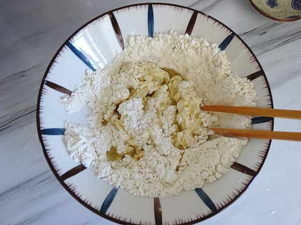 1、準備好面粉,就用普通面粉就可以,用溫水把酵母融化後慢慢倒入面粉中,攪拌成絮狀,然後再放入色拉油攪拌一下手和面。