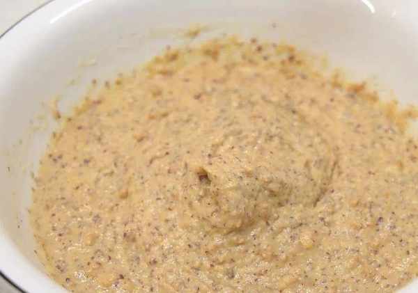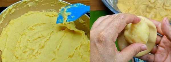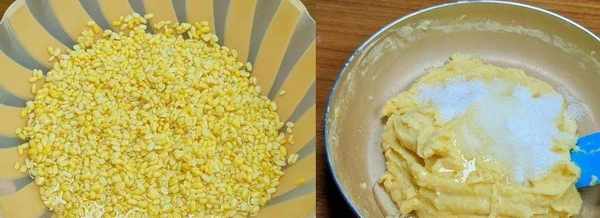 2、另外準備提前一晚上泡軟的綠豆,去掉綠豆殼,將它煮熟,加入白糖攪拌,變成綠豆餡。