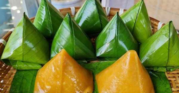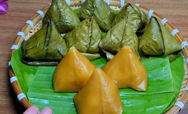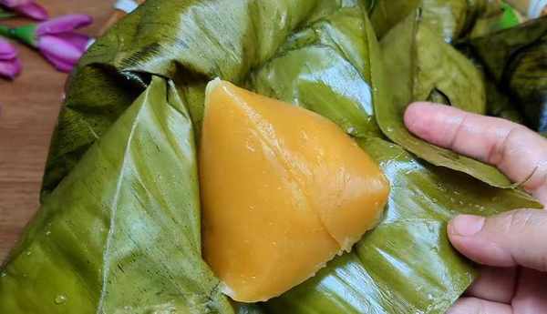 7、這道紅糖綠豆餡三角粽,口感香甜軟糯,中間是飄香的綠豆餡,用來當早餐吃,又營養美味。