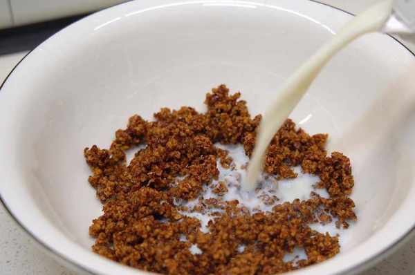 1、準備小半碗紅糖,倒入一盒牛奶融化。