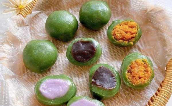 艾草、糯米粉、肉松餡、紅豆餡、芋泥餡