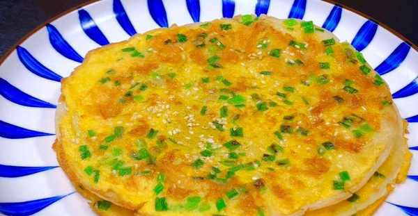 把鍋燒熱,然後刷上食用油,再加入一勺調好的面糊,煎成一個小圓餅,底部定型瞭,然後再加入一勺雞蛋液,全程小火,再加入少許白芝麻,增加香味,翻另外一面煎至金黃,美味又營養的雞蛋蔥花餅就做好瞭。