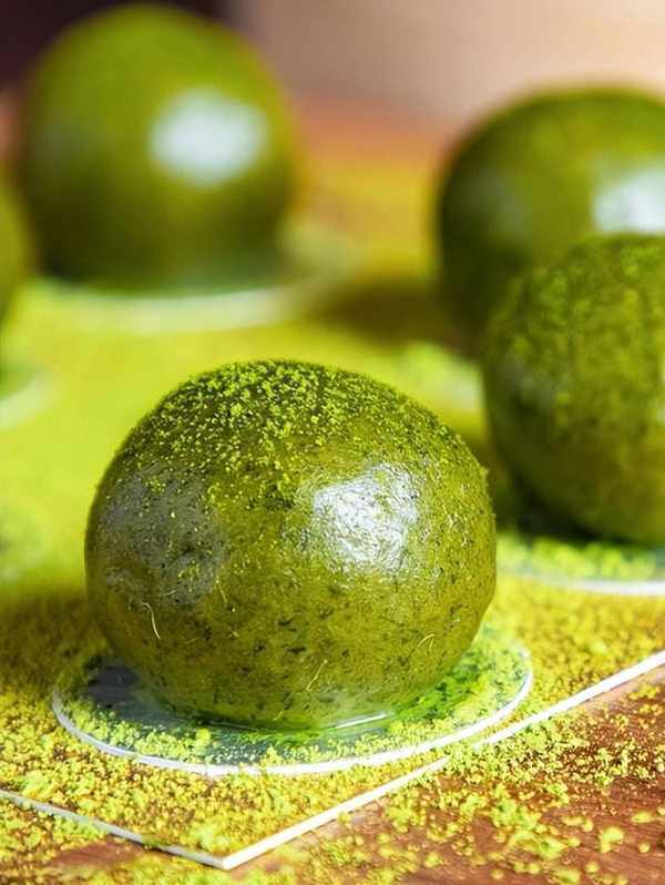 在艾草團中加入適量糯米粉,加溫開水,揉到不黏手時停止加水,反復揉搓,使艾草和糯米粉分佈均勻,成鮮綠色面團。