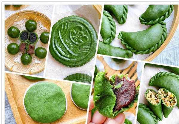 上面說到青團的名字有很多,下文就用“青團”來統稱,青團的口味也是多變的,可甜可咸,經典的豆沙、黑芝麻白糖、蛋黃肉松、雪菜筍丁豬肉餡、蘿卜絲豬肉餡等等,餡料是根據傢人的喜好來決定的,青團就像它的名字一樣,外觀顏色是“青色”的,這是春天的顏色,那青團的“青”來自於什麼呢?