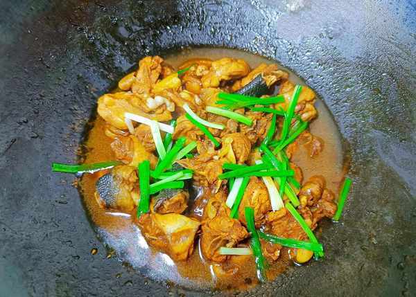 ③加開水沒過雞塊,開大火煮。鍋中水開後翻炒一下,改成中小火煮。等雞肉可以用筷子插進去時加鹽調味,開小火繼續燜煮。