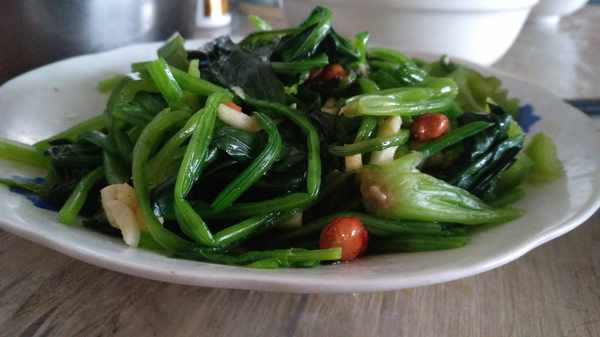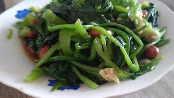 菠菜 1把,花生 1把,鹽3克,胡椒粉少量,香油幾滴,蒜 一個