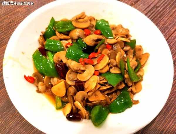 1、口蘑清洗幹凈,切成薄片。青椒切成塊,尖椒切段,蒜切片,薑切片,辣椒切成段。