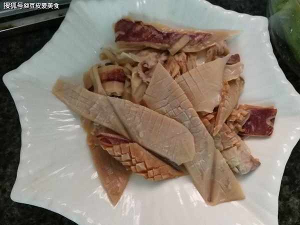 1、魷魚幹提前用水浸泡起來,泡個四五個小時以上。中途換幾次水,可以降低魷魚幹的咸度。泡好後,把魷魚清洗幹凈,改刀切花刀,再切成小塊。
