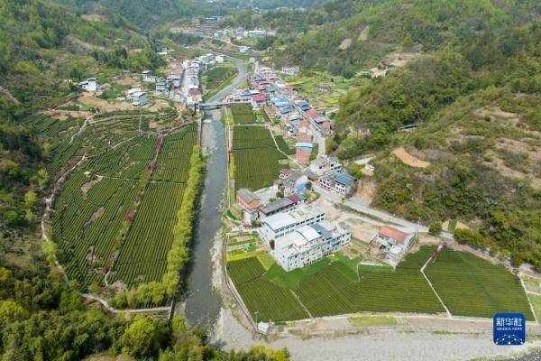 安康市漢濱區大竹園鎮茶園景色(3月31日攝,無人機照片)。