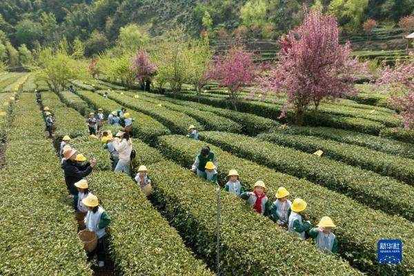 清明節前,陜西省安康市漢濱區茶山上春意盎然,茶農搶抓晴好天氣采收茶葉。近年來,安康市漢濱區著力推動富硒茶產業高質量發展,全區新建標準化茶園15萬畝,茶園總面積達21萬畝,茶葉年產量9000噸以上。