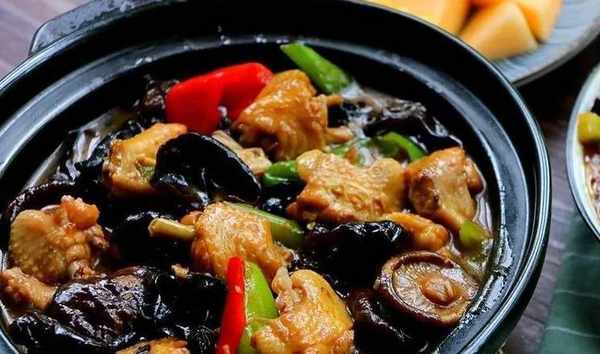 1、幹香菇用40度左右的溫水浸泡1小時,洗凈後切成大塊兒備用。木耳用冷水浸泡半小時,去蒂洗凈後撕成小塊兒備用。將雞翅用刀從中間剁開成兩段,洗凈後瀝幹水分。