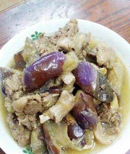 10.筷子插一下鴨肉,可以插得動即可撈出蔥段,放入茄子繼續燉,水如果幹瞭的話可以再加一點水