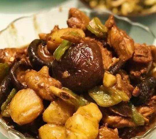 食材:雞腿肉150g;幹香菇9顆;小土豆6顆;青椒半個;老抽一小勺;生抽一勺;生粉一小勺;料酒一勺;糖一搓;鹽一小搓;幹辣椒三個;幹花椒少許