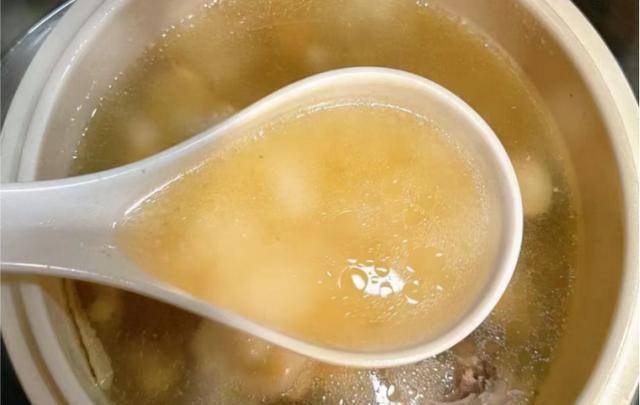 第六步:撇去一層浮沫,加上一些枸杞子,出鍋前加上一丟丟食鹽,加上少許白胡椒粉,迅速用勺子攪動,讓湯汁煮至入味。