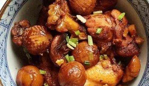 食材:熟栗子1包、雞腿4個、薑絲、蒜片、蔥段各適量