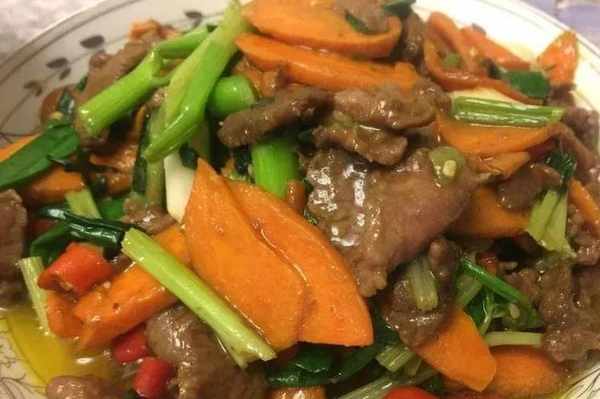 材料:胡蘿卜、牛肉、生粉、生抽、醬油、薑、蒜、胡椒粉、辣椒粉、花椒;