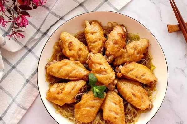 材料:雞翅根、紅薯粉絲、香蔥、小米辣、大蔥、淀粉、生抽、蠔油、料酒、鹽。
