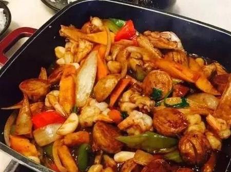 食材:魚丸類、五花肉、芹菜、洋蔥、胡蘿卜、青椒、金針菇、幹豆腐、香菜、蔥、薑、蒜、豆瓣醬、鹽、雞精、孜然、白糖