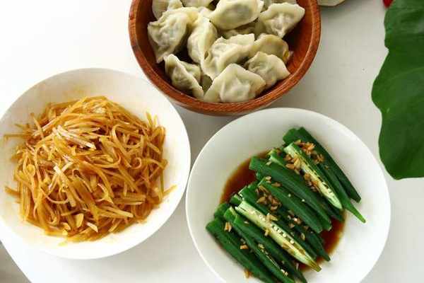 周三:蒜蓉秋葵、幹炒土豆絲、蒸餃
