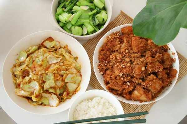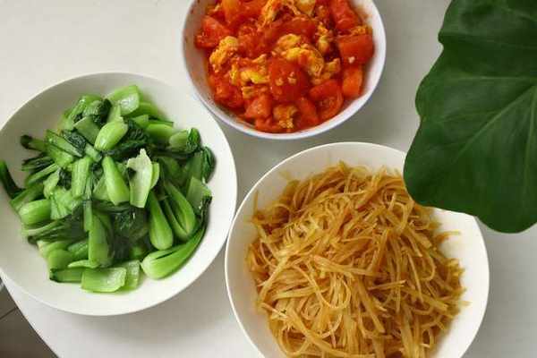 周一:清炒上海青、西紅柿炒雞蛋、清炒土豆絲