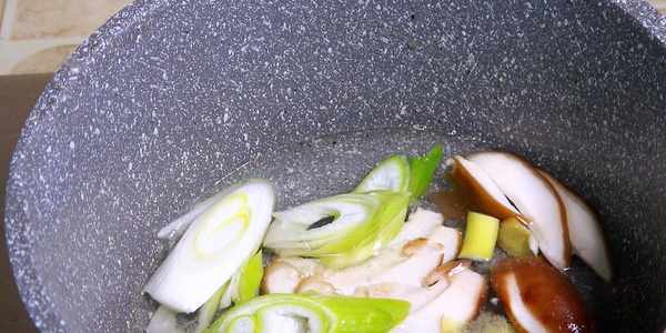 蓋上蓋子大火蒸七分鐘,如果魚比較大,肉比較厚,則需要延長蒸的時間。我這個魚是一斤多一點,比我這個魚還小的,可以縮短蒸的時間。蒸魚的時候我們來做料汁。另起一口小鍋,鍋裡加入一小碗清水,放幾片香菇和蔥片進去,再加一點生薑片,用大火煮開。水開之後熬煮3分鐘,然後把蔥薑和香菇撈出來不用。接著加一點白糖提鮮,3勺蒸魚豉油,用湯水稀釋一下蒸魚豉油,做出來的料汁會更好吃。再次把料汁熬開之後備用。