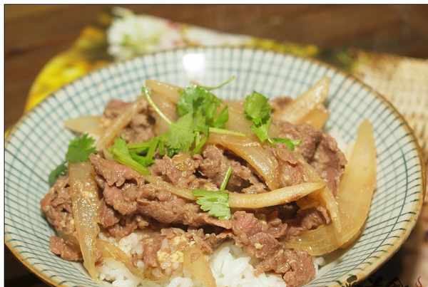 今天,嘗試著用匙肉做瞭一個日式料理點的牛肉蓋飯,肉香更濃鬱,嚼出瞭牛肉的原滋味,醬汁用來撈飯也是相當的美味。但若用新鮮的牛肉做蓋飯,牛肉一定要選嫩肉部位,而且必須橫著纖維紋路切開,比用淀粉、水與一點點油醃制,再入鍋。這樣處理過的牛肉,煮熟瞭才能鮮嫩多汁。