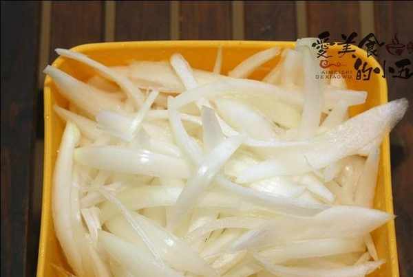 2.洋蔥洗凈,去掉老皮,切成絲。