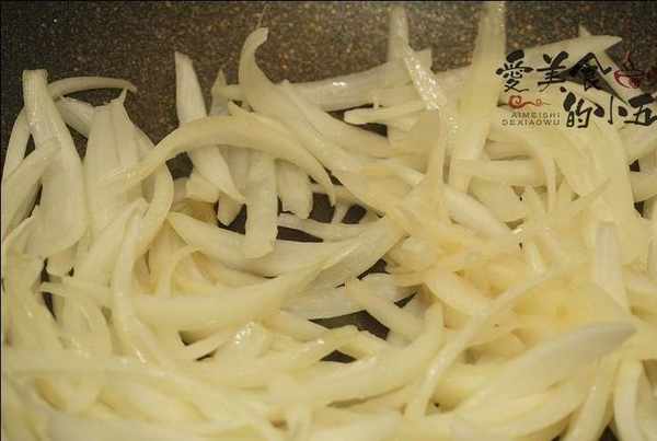 6.鍋中熱油,下洋蔥絲,炒軟。