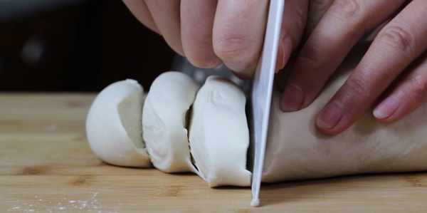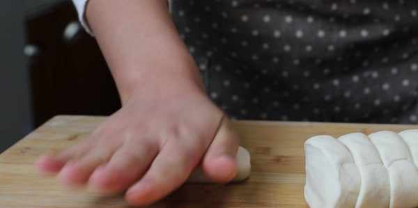 步驟4把醒好的面團搓成長條,切成大小相等的劑子;