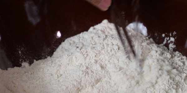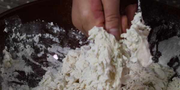 步驟2攪拌至面絮狀,然後用手揉成光滑的面團;