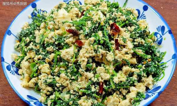 1.麥蒿洗凈,焯水後,撈出,放入涼水盆內,浸泡12個小時,中間換2次清水,然後撈出,擠幹水分,切成小段,豆腐洗凈後,抓成碎。