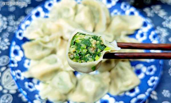 3.300克面粉內加入2克鹽,攪拌均勻,加入涼水,和成面團,醒20分鐘後,取出,搓成長條,切成小劑子,搟成餃子皮,包入適量菜餡。