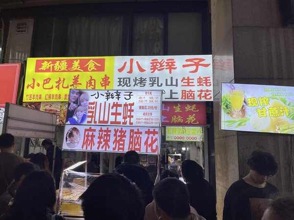 澎湃新聞消息,“來看一下,隨意搭配瞭哦!”一傢賣麻辣味海鮮的老板吆喝著,不遠處其他攤位雲集,有脆皮香腸、無骨鳳爪、乳山生蠔、鹵肉卷、烤苕皮,還有加泡菜的臭豆腐。