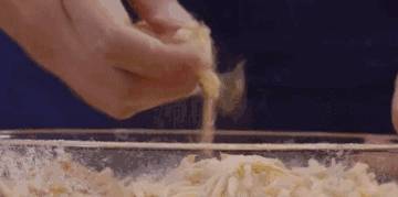 土豆絲中加入面粉、花椒粉拌勻,使每個土豆絲上都裹有面粉,土豆與面粉比例大約為2:1