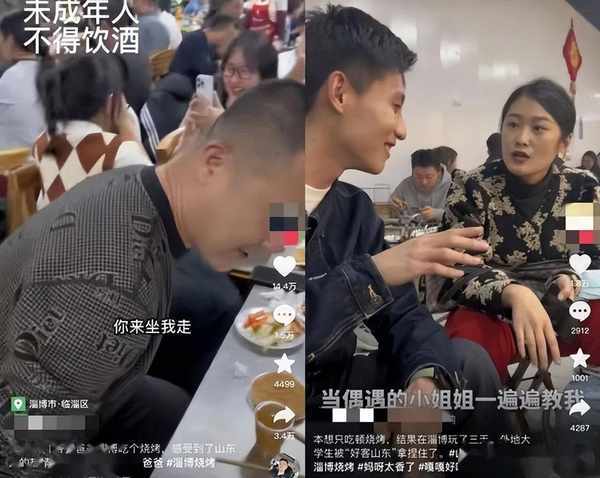 一位獨自到淄博吃燒烤的濟寧女孩張寧,剛到淄博時很擔心人生地不熟被人載客,結果她的想法完全多餘。到瞭燒烤店,店裡店外都滿瞭,老板看她一個人又是外地的,把自己的小辦公桌搬出來,又是送菜又是送飲料,把張寧感動的差點哭瞭。