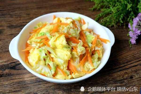 食材:包菜、胡蘿卜、土雞蛋、蒜末、蔥花。