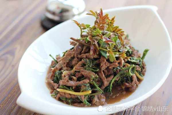 花椒芽適量、牛裡脊肉300g、大蔥1根、生薑3片、甜面醬1勺、蠔油1勺、味極鮮適量、料酒適量、淀粉2勺、鹽適量。
