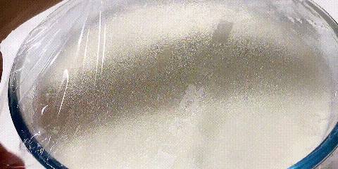 2、蓋保鮮膜發酵之前,一定要充分攪勻,這樣發酵好後蒸的發糕才松軟鮮香。