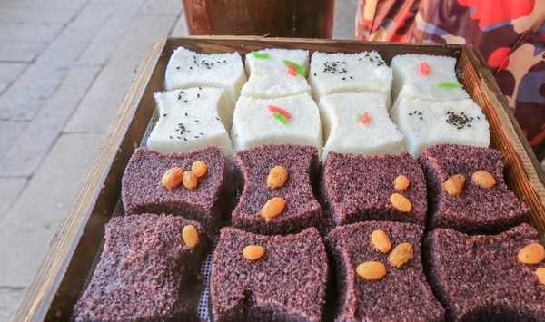 桂花糕食材:水磨糯米粉300克、粘米粉200克、白糖100克、豆沙適量、水230克