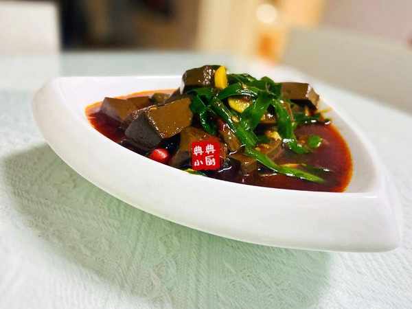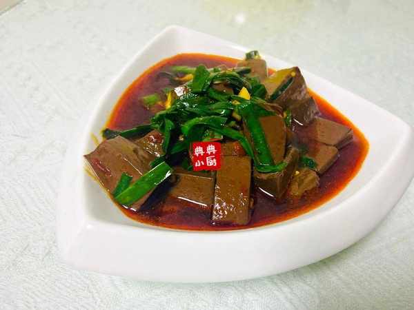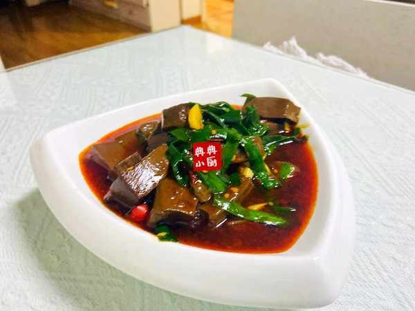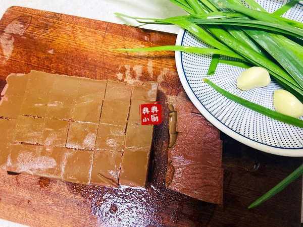 主要食材:鴨血,韭菜,蒜,紅尖椒