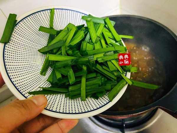 把韭菜倒進去,翻炒均勻,不需要另外加鹽,直接裝盤就可以瞭。