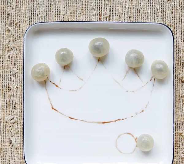 ■蘸巧克力醬畫出王冠的造型,用龍眼肉當作珍珠點綴;